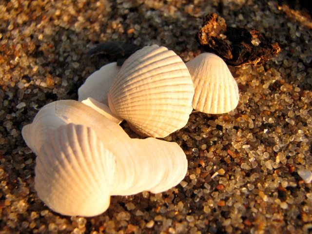 Schaufeln und Eimer sind im Sand wichtig, aber legt bitte mal große Muscheln hin, Schneckengehäuse, Kieselsteine, Federn, Strandhölzer in den Sand!