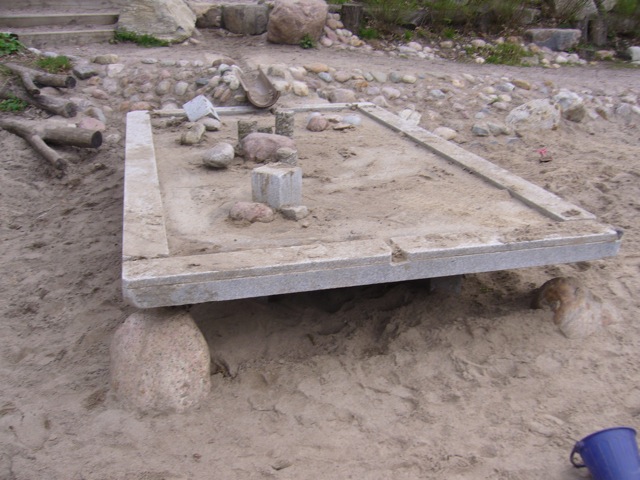 Matschtische haben wir eigene entwickelt, da Kinder mehr Gestaltungsspielraum brauchen um selber was zu bauen zum Stauen, für Tropfburgen, Kuchen backen… und natürlich für die Kinder auf dem Rollstuhl! Sie sind unterfahrbar und damit leichter zu bespielen.Der Tisch spart auch Wasser!